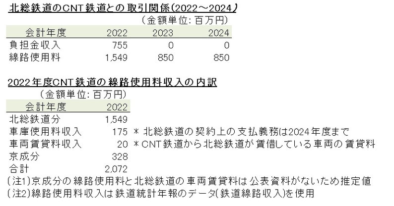 しかし、CNT鉄道の線路使用料算定の基礎となる資本費(減価償却費+営業外費用)は2022年度で770百万円程度ですから北総鉄道の線路使用料だけで資本費が賄われることになります。